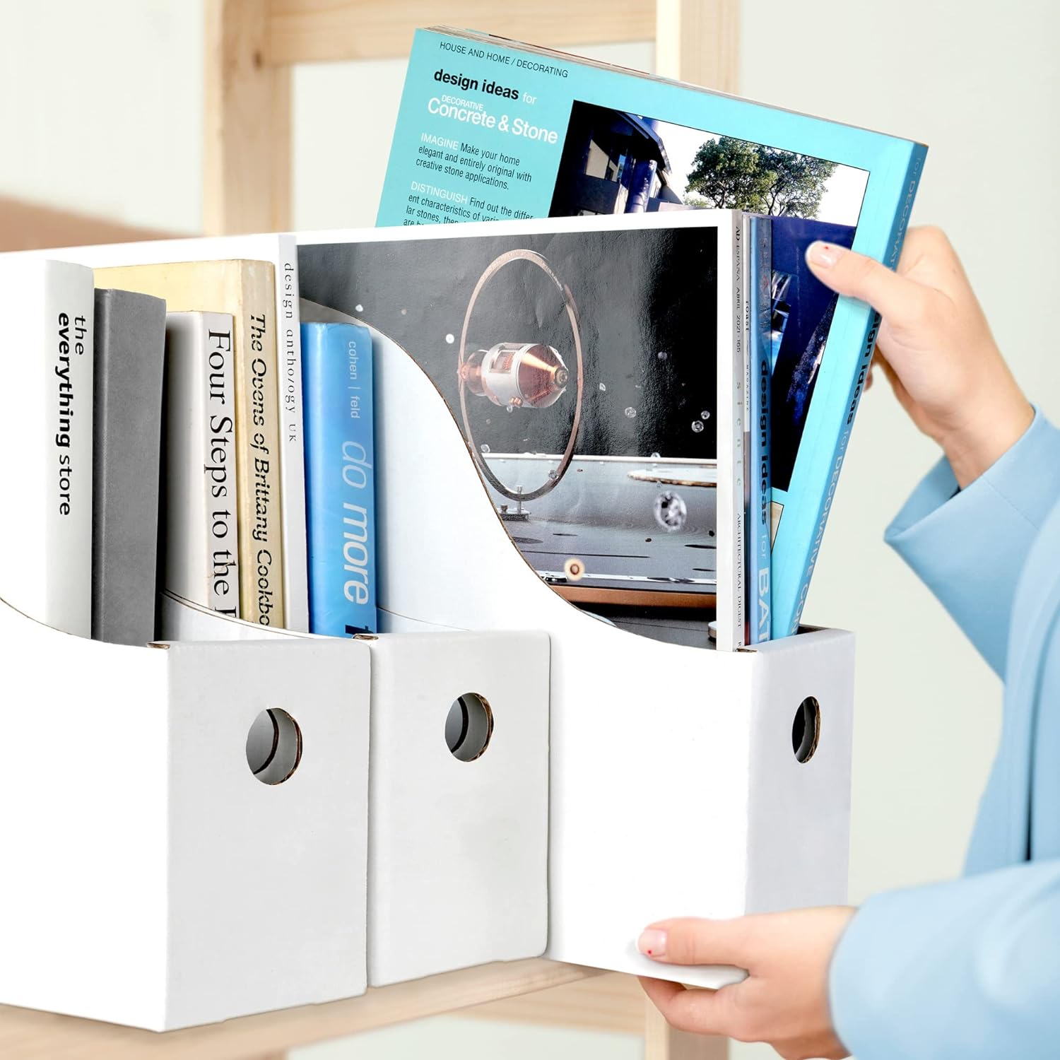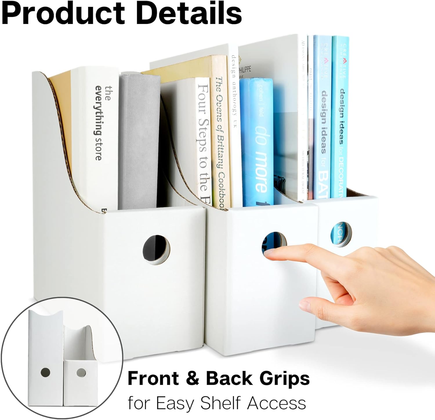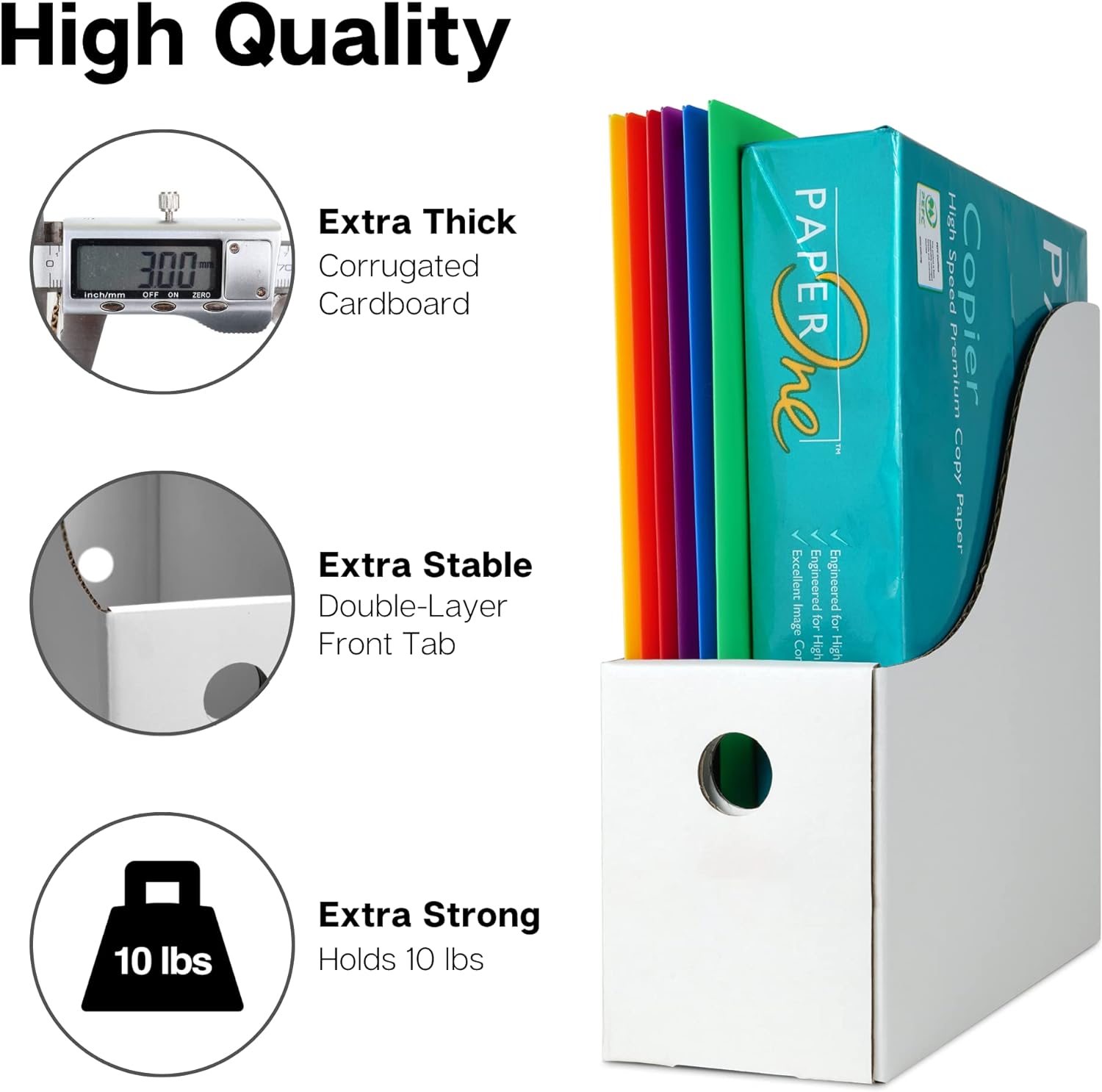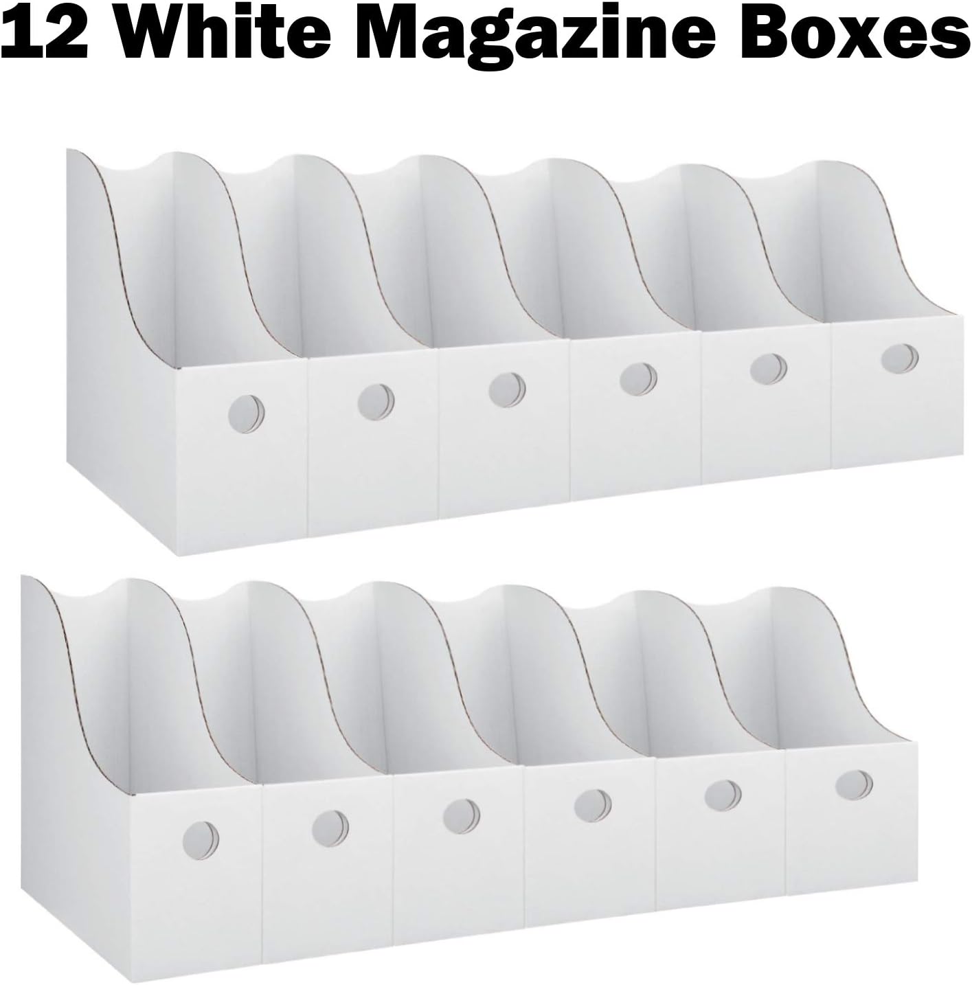 Dunwell White Magazine File Holder (12 Pack) – Sturdy Cardboard Magazine Holder, Vertical File Folder Holder, Magazine Holder for Desk, Shelves, Office or Classroom Book Organizer, Paper Book Bins