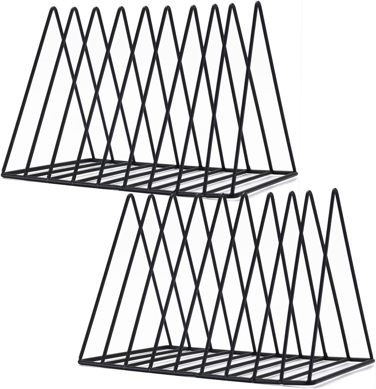 Sooyee 2 Pack 9 Slot Black Magazine Holder,Desktop File Sorter Organizer Triangle Bookshelf Decor Home Office